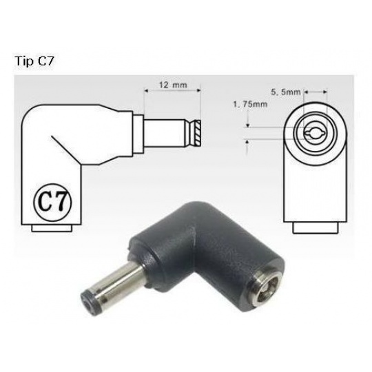 Konektor, kterým lze redukovat konektor C.4 univerzálního síťového adaptéru na konektor C7 (5,5mm x 1,7mm) vhodné pro notebooky Acer