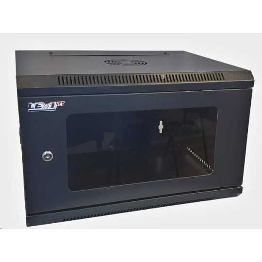 LEXI-Net 19" nástěnný rozvaděč 6U 600x450, nosnost 60 kg, skleněné dveře, rozložený, černý