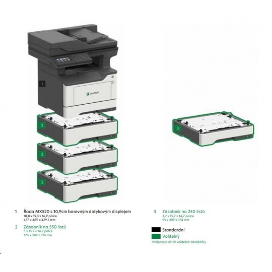 LEXMARK Multifunkční ČB tiskárna MX521ade, A4, 44ppm, 1024MB, barevný LCD displej, duplex,RADF, USB 2.0, LAN,
