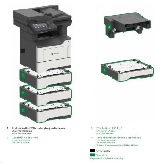 LEXMARK Multifunkční ČB tiskárna MX622ade, A4, 47ppm, 2048MB, barevný LCD displej, duplex,DADF, USB 2.0, LAN,