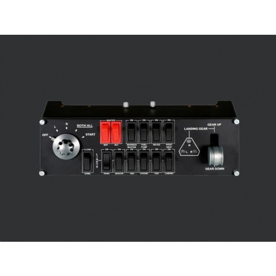 Saitek's Professional Flight Switch Panel is ideal for expanding the number of controls in your flight simulator setup. Attach it to your Logitech G Flight Yoke, place it atop your desk, or even mount it to your own custom cockpit setup. Control your landing gear and lights, engine power and other important aircraft functions, all from one compact unit.