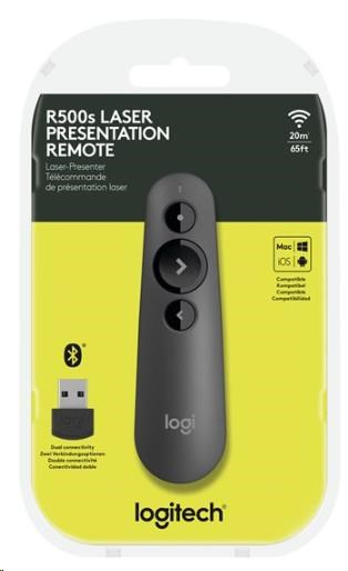 • Deliver impactful presentations with the R500 Laser Presentation Remote. Move freely and navigate slides from up to 20 meters away – and point out precise areas of focus with the red laser pointer. The R500 is optimized to work with Windows®, macOS and leading presentation software.