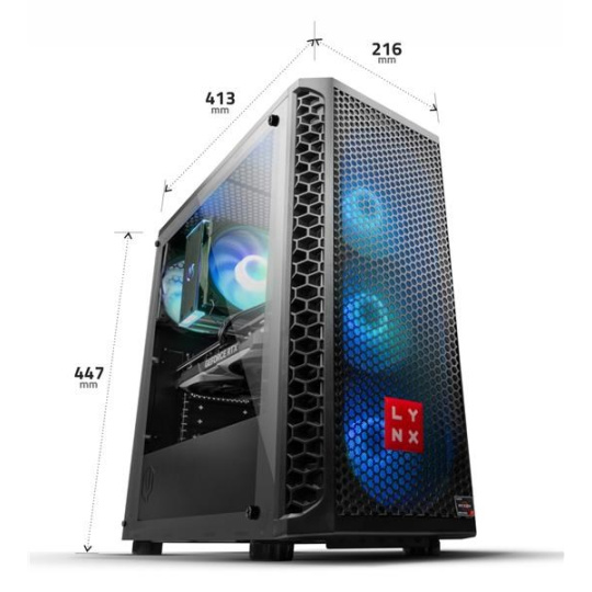 Základem sestavy je deska s čipovou sadou B660 osazená 6jádrovým procesorem Intel i5 12400F, který disponuje technologií HyperThreading pro plynulejší multitasking, pracující na frekvenci 2.5 GHz, nebo až 4.4 GHz s technologií turbo. Paměti RAM značky Kingston jsou pro sestavy LYNX standardem, v této sestavě se jedná o paměti s kapacitou 16 GB DDR4 (2x 8 GB). Plynulý obrazový výstup je zajištěný grafickou kartou NVIDIA GeForce RTX 3060, která disponuje 12GB paměti GDDR6. V této sestavě nebrzdí ani uložiště je zde SSD disk 1 TB M.2 PCIe NVMe pro veškerá potřebná data a software. Dostatečné napájení zajištuje 550W zdroj. Sestava je dodávaná včetně nového operačního systému Windows 11 Home.