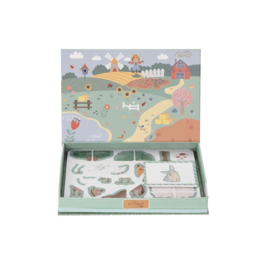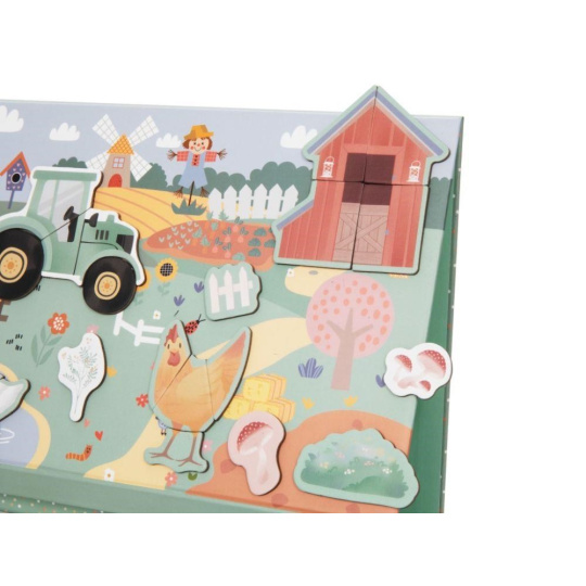 Magnetická hra 2v1 zavede děti na farmu se zvířátky, která mohou potkat ve svém okolí, v jejich reálné (skutečné) podobě. Na magnetickém obrázku s venkovskou krajinou si děti vytvoří vlastní farmu nebo si jen pohrají s jednoduchým puzzle. Z jednotlivých dílků puzzle děti poskládají traktor, zvířátka nebo dle přiložených kartiček celé obrázky..