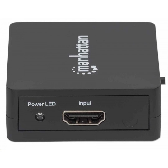 Easily distribute a single HDMI signal to multiple displays.The Manhattan 1080p 2-Port HDMI Splitter sends HDMI signals from a single Blu-ray player, satellite receiver, digital recorder, set-top box, game console or other HDMI source to two HDMI displays. Flexible Solution for Many A/V ApplicationsIdeal for trade shows, classrooms, video conferencing, presentations and retail applications, the Manhattan 1080p 2-Port HDMI Splitter features a built-in booster for added signal strength. It’s also a good choice for splitting and distributing a synchronous signal to multiple HDMI displays when source equipment is remotely stored in a secured room or cabinet. Users can cascade multiple units up to three levels and output HDMI video/audio to additional displays in widely distributed applications.Quality Construction and Easy InstallationFull compliance with HDMI, HDCP 1.0, 1.1 and 1.2 as well as DVI 1.0 ensures that the Manhattan 1080p 2-Port HDMI Splitter can provide long service and reliable performance. Quickly connect HDMI cables (not included) and the USB power cable, and this affordable HDMI solution is complete — no complicated settings or software or hardware configurations necessary.