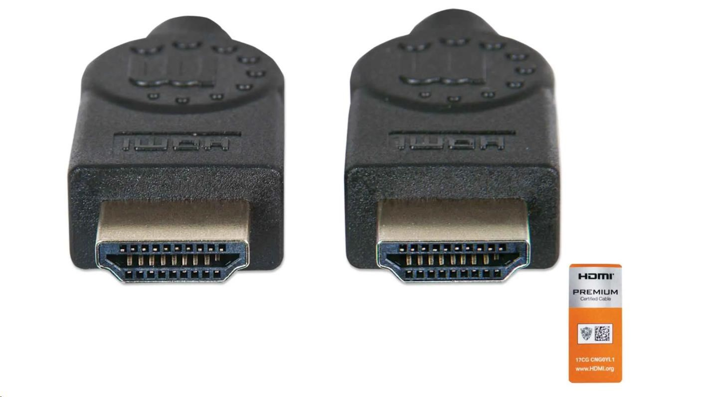 MANHATTAN Kabel HDMI Premium High Speed + Ethernet, 5m, černý