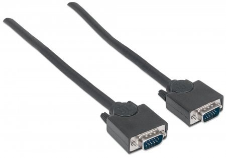 Manhattan SVGA Cables easily connect a monitor with a desktop or notebook computer. Ideal for use with video splitters, KVM switches and any HD15-equipped display, computer or device, Manhattan SVGA Cables are engineered and constructed of quality materials to deliver dependable transmissions in video applications. Full foil and braided shielding help minimize EMI interference and mini-coax (RGB) with paired video wire construction combine to provide maximum conductivity and clear, crisp images with reduced distortion over extended distances.