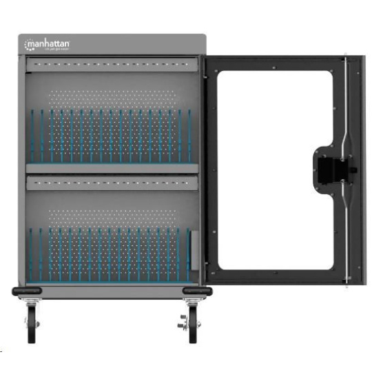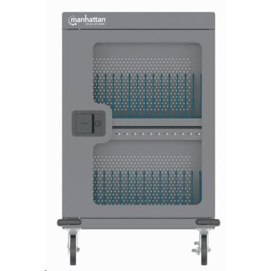 MANHATTAN nabíjecí vozík - 32 portů USB-C, 576 W, přepěťová ochrana, tichá ventilace, kovové pouzdro, černá