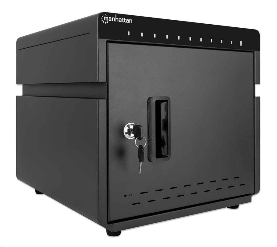 MANHATTAN stolní nabíjecí skříň - 10 portů, 180 W, přepěťová ochrana, tichá ventilace, kovové pouzdro, černá