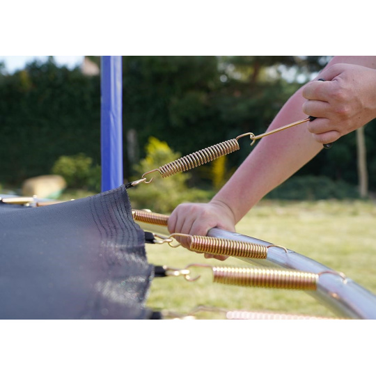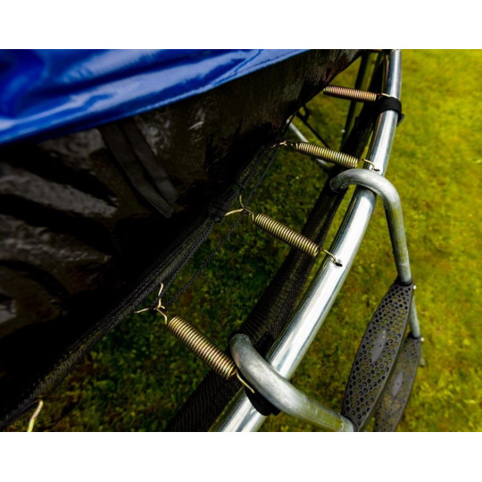 Vnitřní ochrannou síť najdete přímo v balení, nemusíte si ji dokupovat zvlášť. Vnitřní ochranná síť je bezpečnější než vnější síť - brání přístupu skákajícího do části s pružinami. Vstupní prostor je zajištěn třemi přezkami a brání vypadnutí. Tyče jsou obaleny ochranným návlekem z měkčené pěny. Nohy trampolíny jsou samostatné a zvyšují stabilitu celé trampolíny. Spojení tyčí nohou trampolíny a sítě je jištěno speciálními sponami.