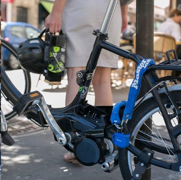 Zpevněný ocelový řetěz s ocelovým visacím zámkem je 90 cm dlouhý a obsahuje ocelové spojky o průměru 6 mm, které odolávají řezání. Nylonový kryt řetězu zabraňuje poškrábání. Visací ocelový zámek o průměru 40 mm je odolný proti povětrnostním vlivům. Plastový kryt na visacím zámku zabraňuje poškrábání. Třmen s průměrem 9 mm je vyroben z oceli pro odolnost proti řezání. Obsahuje 4-kolíkový válec zabraňující vyhmatání a dvojitou západku odolnou proti vypáčení.