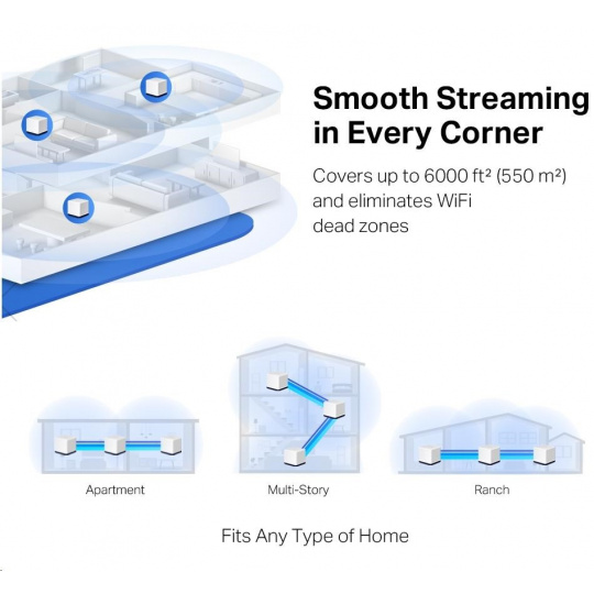 • Pokrytí celé domácnosti – pokrytí prostoru až 6 000 ft2 (550 m2) vysokorychlostní sítí Wi-Fi, eliminující mrtvé zóny Wi-Fi ve vaší domácnosti.