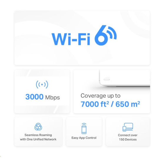 - Pokrytí celé domácnosti – pokrytí prostoru až 650 m2 vysokorychlostní sítí Wi-Fi, která eliminuje mrtvé zóny Wi-Fi pokrytí ve vaší domácnosti.