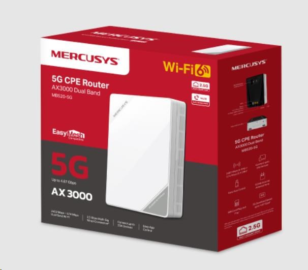 Mercusys MB520-5G WiFi6 EasyMesh router (AX3000, 5G, 4G LTE, 2,4GHz/5GHz,1x2,5GbE LAN/WAN,1xGbE LAN,1xRJ11,1xnanoSIM)
