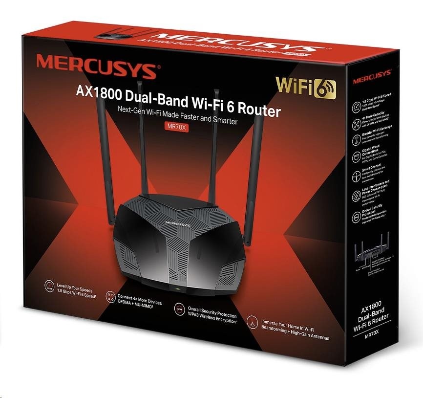 | Package Contents | • AX1800 Wi-Fi 6 Router MR70X • Power Adapter • Quick Installation Guide • RJ45 Ethernet Cable |