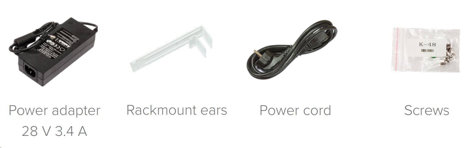 Switch podporuje jak aktivní PoE dle 802.3af/at tak pasivní, PoE budget činní 67W, napájecí adaptér do sítě 230V je součástí balení(28V/3,4A). Switch lze napájet i prostřednictvím dvou DC konektorů na zadní straně (48V-57V a 18V-27V). Pokud budete tedy switch napájet přes DC vstup a vyžadujete aktivní PoE dle 802.3af/at je nutné připojit DC napětí o nominální hodnotě 48-57V do konektoru k tomu určeném.