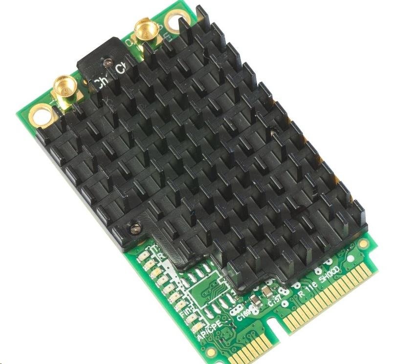 Jedná se o novou mini-PCIe kartu podporující nejnovější standart 802.11ac (zpětně kompatibilní s 802.11a/n), lze použít například v RB953, RB912, RB800, RB14e a x86. Karta pracuje v pásmu 5GHz (4920-6100MHz, omezeno dle příslušné země). Disponuje dvěma výstupy MMCX (dual chain) pro konfiguraci MIMO 2x2, její maximální výkon činní 500mW. Maximální spotřeba karty 4,5W. Na kartě se nachází signalizační LED diody pro wireless mód, connection status (connected/searching/disabled), sílu signálu a aktivitu TX/RX, lze tak lépe "zaměřit" spoj.