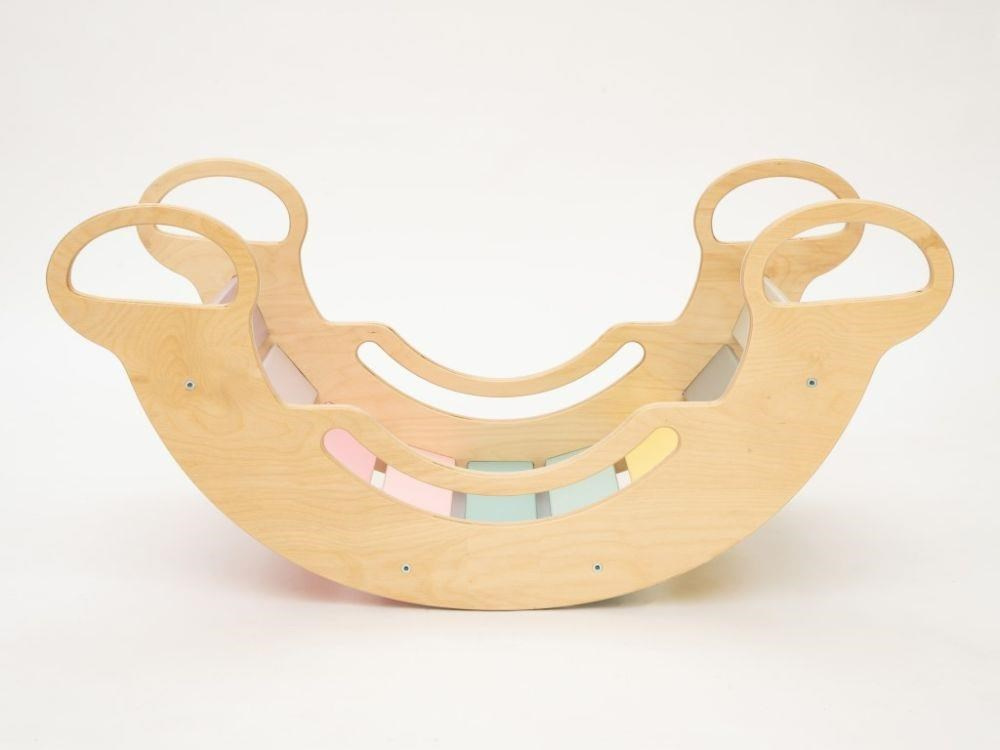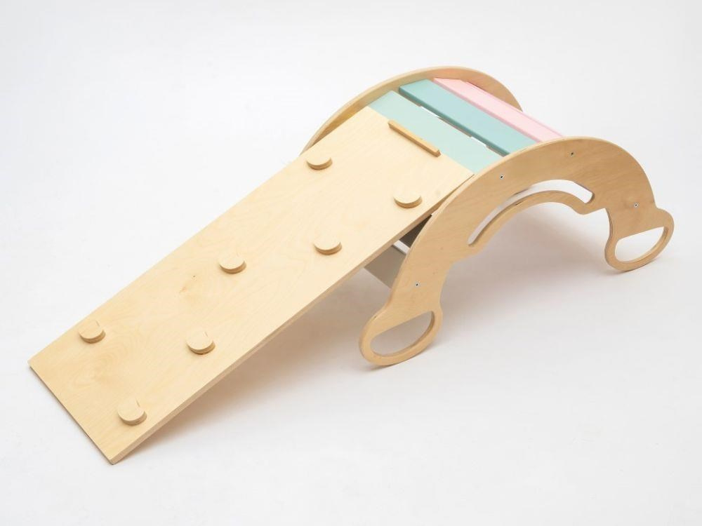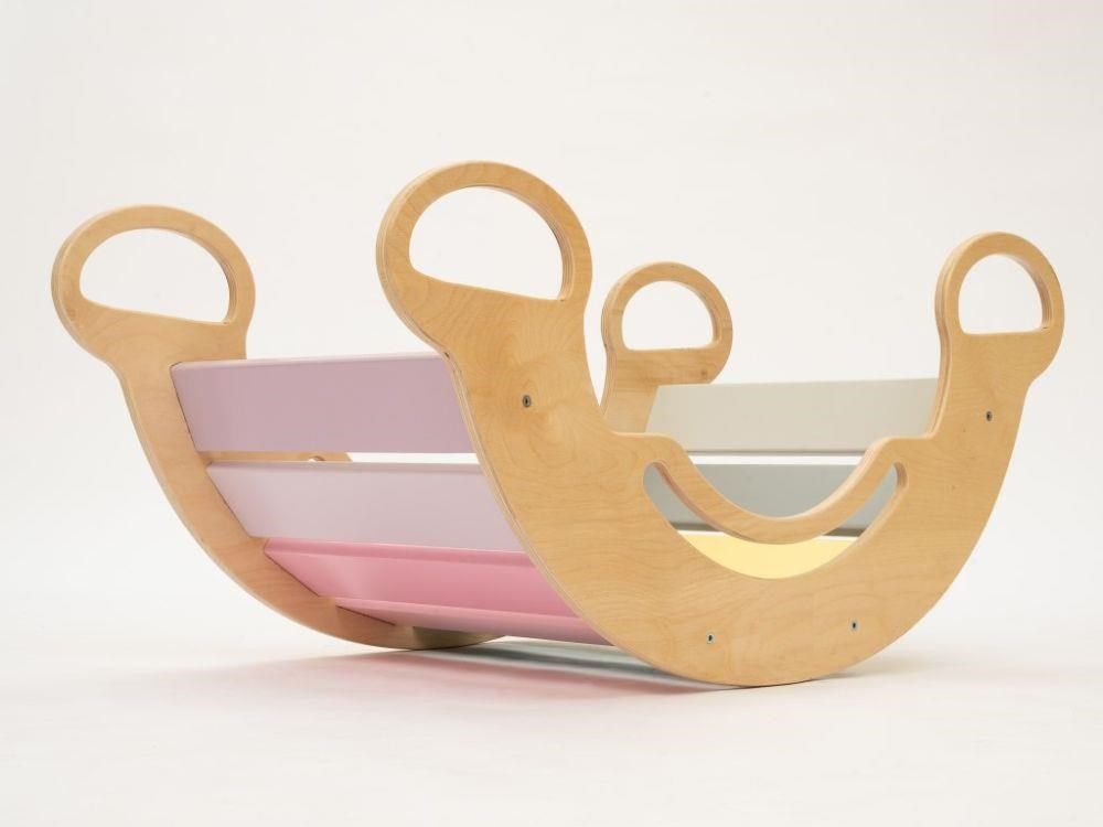 Montessori dětská houpačka smile 6in1 jistě vykouzlí úsměv na tváři vaší holčičky nebo chlapce. Svým designem, pastelovými barvami a širokým úsměvem bude denně lákat děti k zábavné hře i příjemnému pohoupání. Její využití je všestranné, může být houpačkou, skluzavkou, prolézačkou, skrýší i sedačkou, při doplnění oboustranným prknem i dětským nábytkem. Oboustranné prkno není součástí houpačky. Díky jemným pastelovým barvám je vhodná do každého interiér. Vyrobená je z těch nejkvalitnějších materiálů, ručně dohladka opracovaná a lakovaná barvami s atestem. Montessori houpačka smile je širší než naše Montessori houpačky 5in1, proto k této houpačce nabízíme i speciální oboustranné prkno, které je doplňkem k houpačkám smile. Díky prknu snadno proměníte houpačku smile v dětský stoleček. Oboustranné prkno není součástí houpačky, pro využití houpačky jako nábytku je nutné prkno samostatně dokoupit..