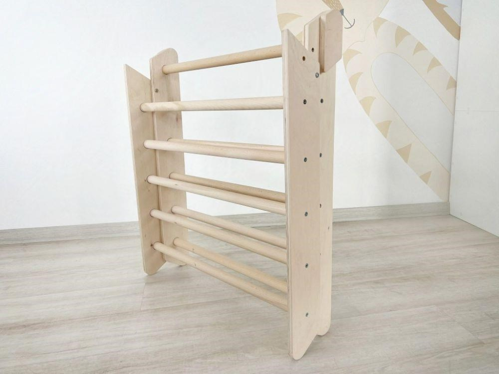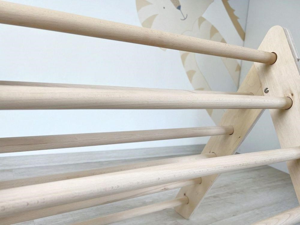 Montessori Piklerové trojúhelník nabízí dětem možnost pohybové realizace dle vlastních schopností a odvahy. Děti se naprosto přirozeně naučí rozpoznat a respektovat své možnosti a míru kuráže, zároveň jejich obratnost bude stále růst. Žebřík má bezpečnou výšku, příčky jsou akorát široké pro pohodlný úchop a navíc opatřené systémem proti protáčení příček.