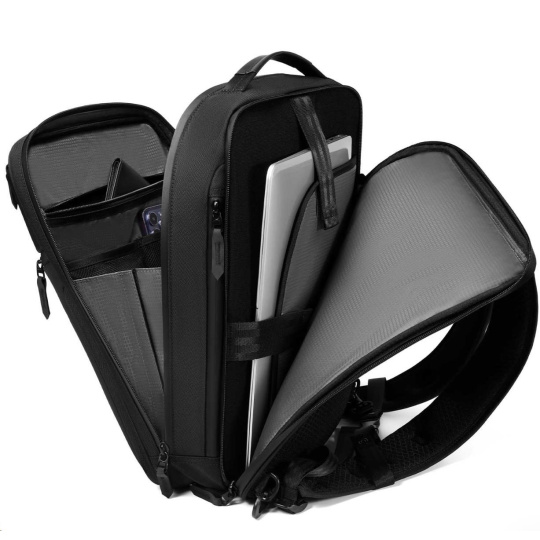Hlavní kapsa batohu je přehledně členěna do vnitřních kapes a přihrádek. Dále je vám k dispozici velká zadní kapsa, dvě přední kapsy, skrytá kapsa a kapsa na láhev.