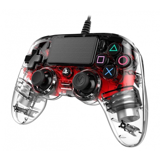 Nacon Wired Compact Controller - ovladač pro PlayStation 4 - průhledný červený