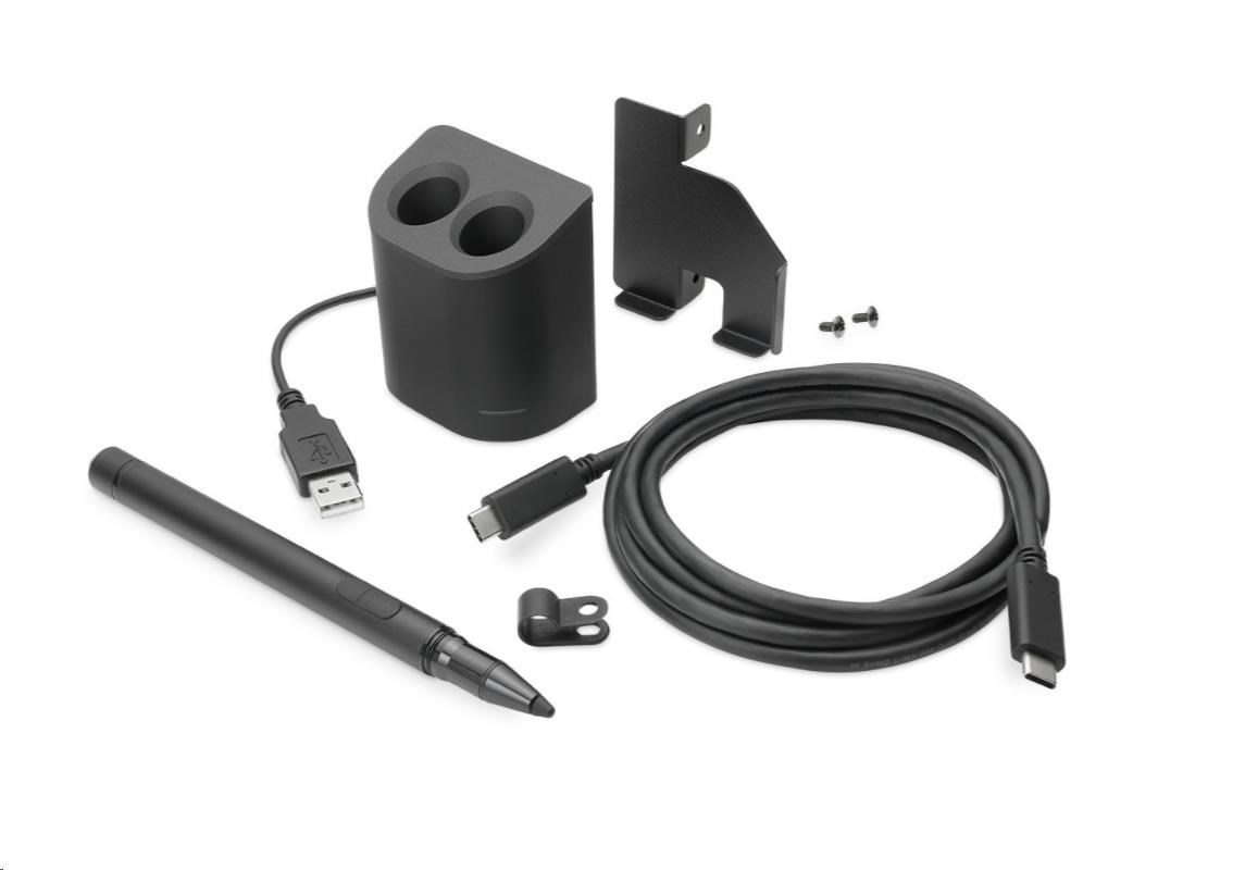 Jediný zabezpečený kabel USB-C spojuje vaše zařízení s displejem a automaticky synchronizuje vestavěný fotoaparát, reproduktory, mikrofon, dotykové zařízení a pera.