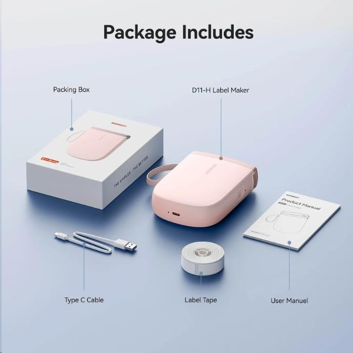 Niimbot Tiskárna štítků D11-H Smart, růžová + role štítků 160 ks