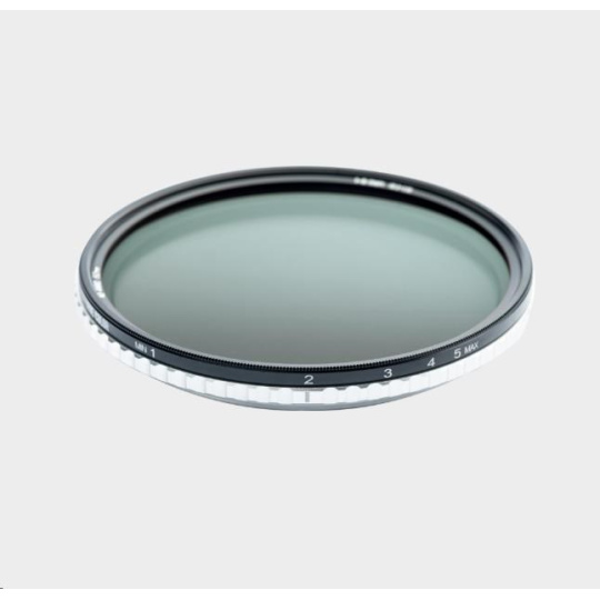 NiSi ND-VARIO 1–5 Stops True Color je variabilní neutrální šedý filtr, který umožňuje snížení expozice v rozsahu 1 až 5 EV. Hustota (ND faktor) se plynule nastavuje otáčením předního prstence filtru, a to s využitím nebo bez použití přiložené stříbrné páčky. Filtr má pevné dorazy na koncových pozicích, díky nimž vždy víte, kde se při práci nacházíte.