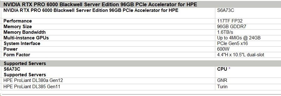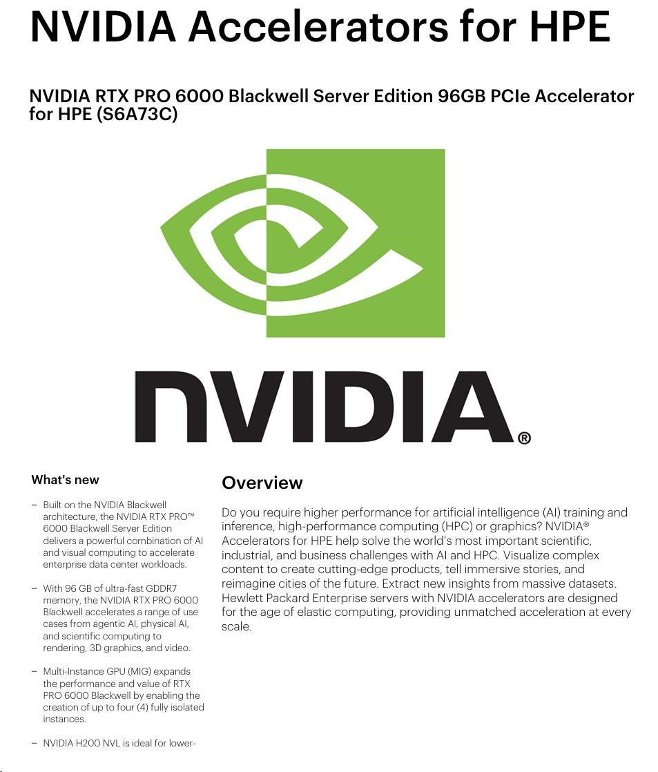 NVIDIA RTX PRO 6000 Blackwell Server Edition 96GB PCIe Accelerator for HPE