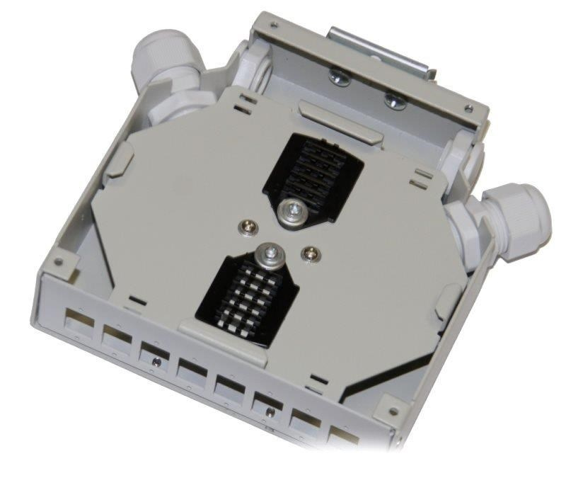 Optický rozvaděč na DIN lištu 8x SC simplex (8x LC duplex) s hřebínky na 16 svarů