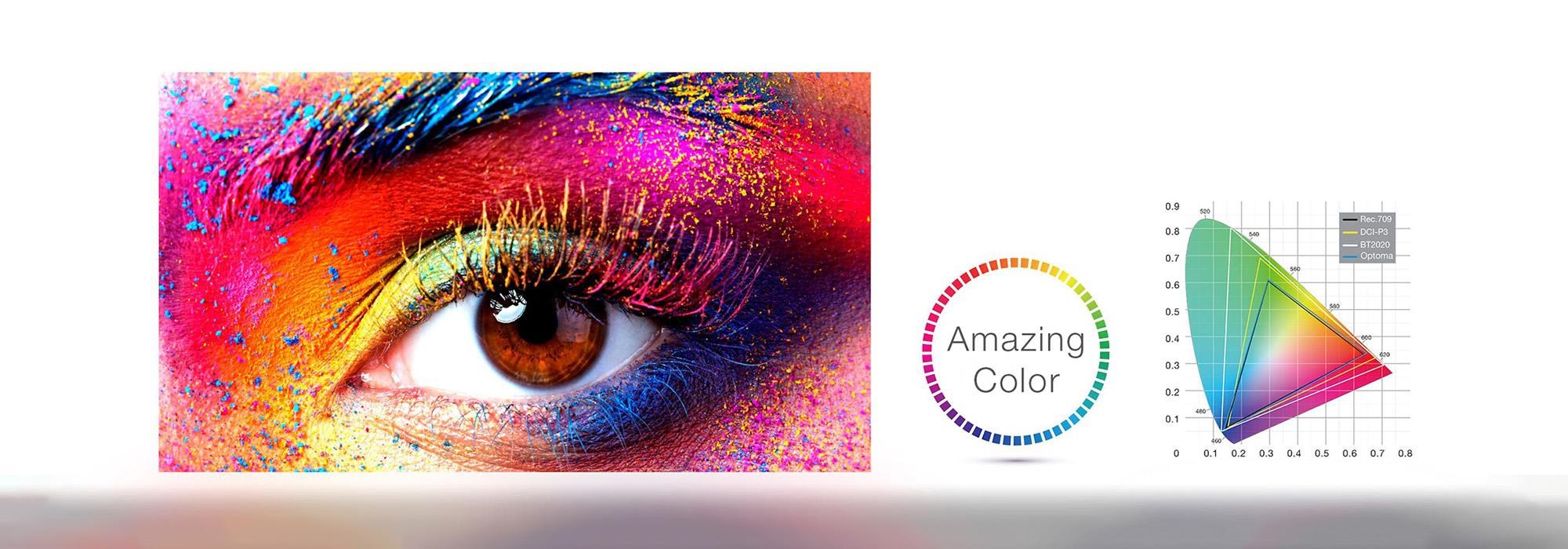 Vytvářejte působivé prezentace a vzdělávací lekce s ohromujícími barvami. Projektory Optoma poskytují spolehlivý barevný výkon vhodný pro jakýkoli obsah a prostředí. Od přesných barev sRGB pro realistický obraz až po živé a úderné prezentace. Nabízíme režim zobrazení, který specificky splní vaše potřeby. Perfektní pro celou řadu grafických i video prezentací.