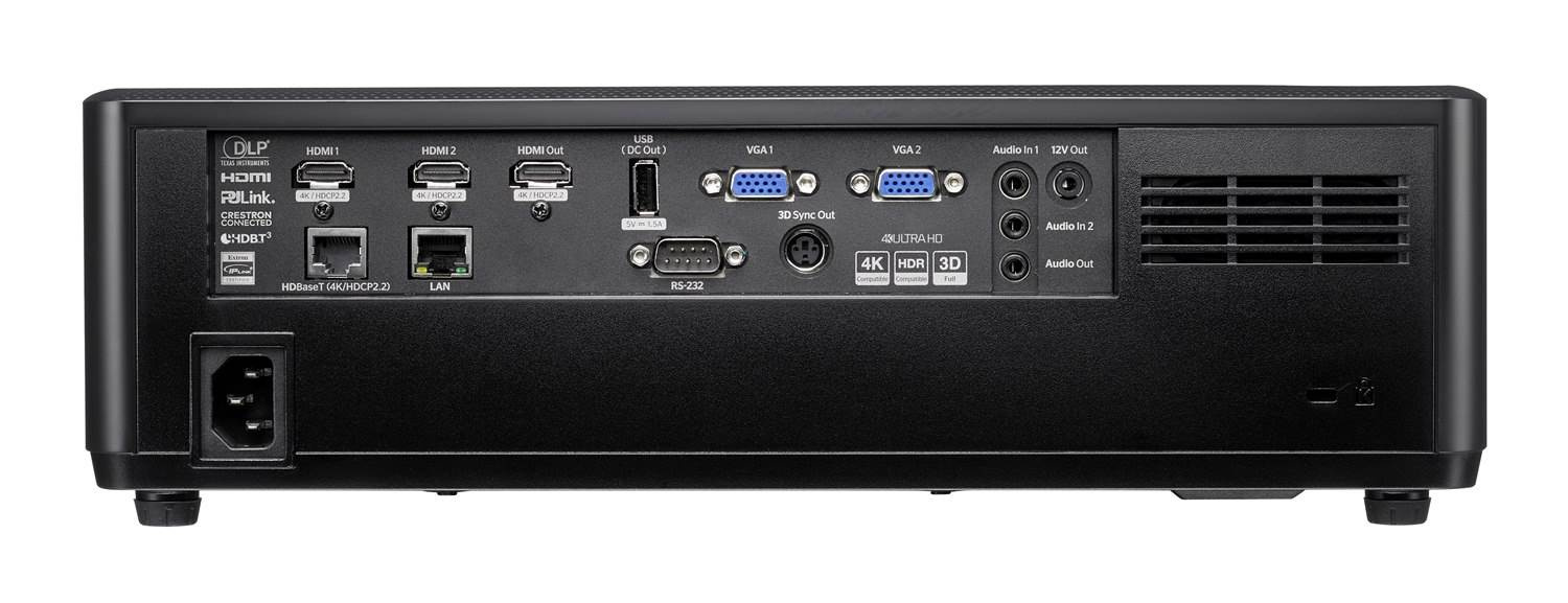 PřipojeníVstupy 2 x HDMI 2.0, 2 x VGA, 2 x Audio 3,5 mm, 1 x USB-A výkon 1,5A, Výstupy 1 x HDMI 2.0, 1 x audio 3,5 mm, 1 x 3D synchronizace, 1 x 12V spoušť, Ovládání 1 x HDBaseT 4K, 1 x RJ45, 1 x RS232
