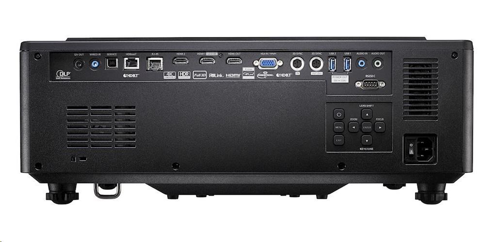 - Vstupy 1 x HDMI 1.4a 3D podpora, 1 x HDMI 2.0, 1 x VGA, 1 x audio 3,5 mm, 1 x HDBaseT, 1 x 3D synchronizace