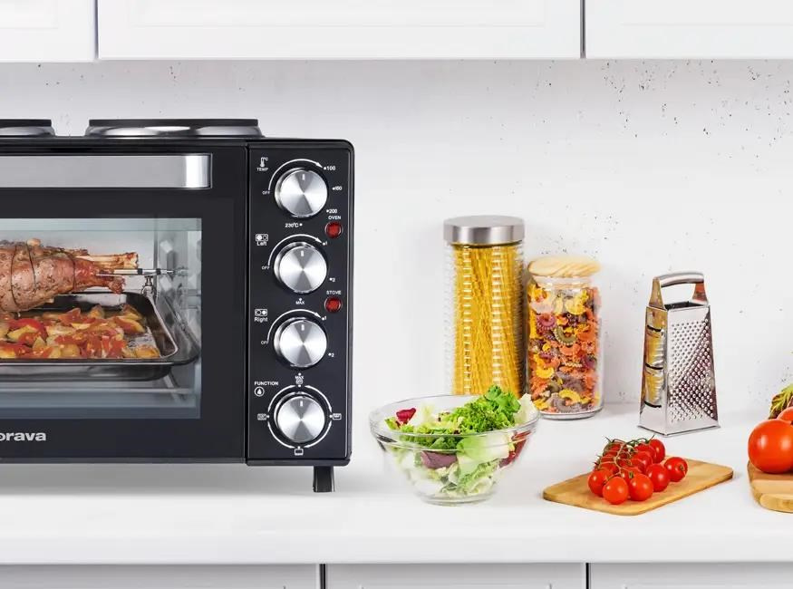 Máte v kuchyni málo místa, nebo si potřebujete na chatě vytvořit malý kuchyňský kout pro přípravu lahodných jídel? Ideálním řešením je Orava Elektra X28 – inteligentní a velmi praktická kombinace elektrické trouby s dvojvařičem.