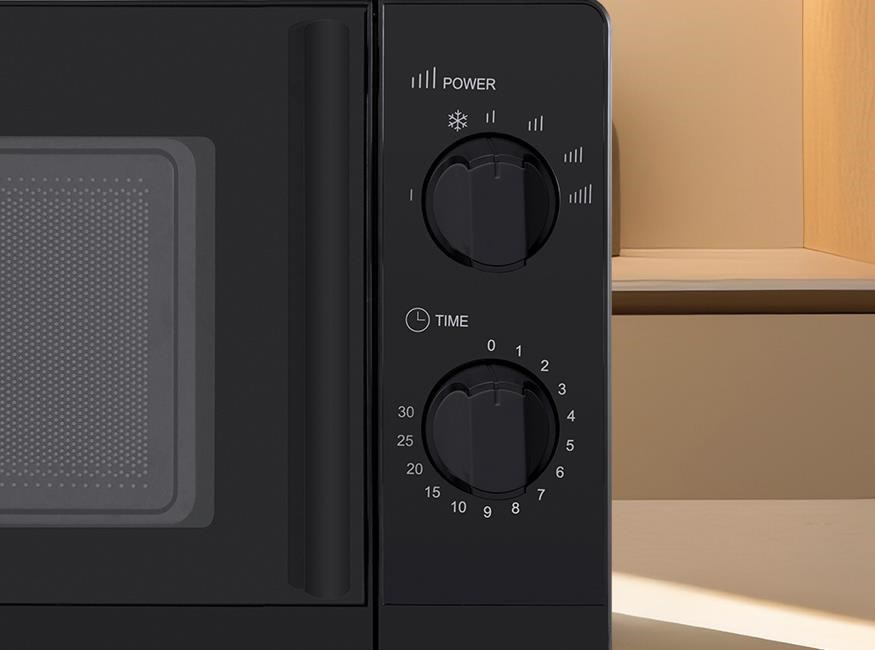 Tato mikrovlnná trouba disponuje až šesti režimy nastavení ohřevu nebo rozmrazování. Její ovládání je opravdu jednoduché a to prostřednictvím otočných ovladačů. Prvním si nastavíte sílu ohřevu a druhým čas, který požadujete na ohřev nebo rozmrazování vašeho pokrmu. Maximální čas ohřevu je 30 minut.