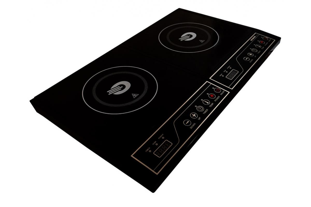 Indukční vařič Orava. Indukční vařič VP-40i se dvěma varnými zónami, které tvoří elegantní černé sklo s velmi jednoduchou údržbou. Přehledné dotykové ovládání umožňuje osm úrovní nastavení teploty od 60°C do 240°C. Časovač, LED displej.