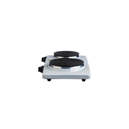 "Elektrický vařič se dvěma plotýnkami 185mm a 155mm topné desky. Plynulá regulace ohřevu. Světelná signalizace ohřevu. Ochrana proti přehřátí Napájení: 220 - 240V~ 50/60Hz, 2 500 W".