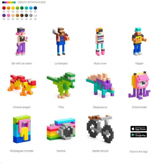 DESIGNOVÁ ŘADA PIXIO-800 obsahuje 800 bloků PIXIO v šestnácti dokonale spárovaných barvách,