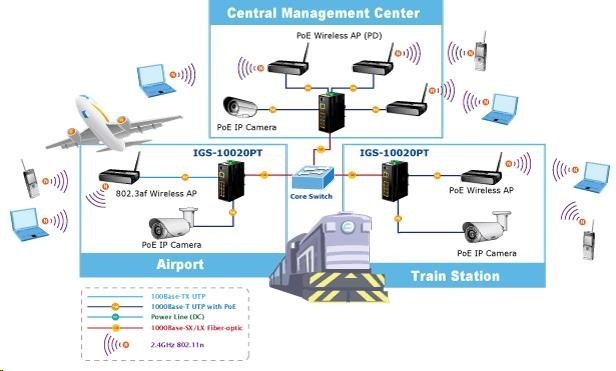 Planet IGS-10020PT PoE switch 8x 1000Base-T, 2x SFP, 802.3af 130W, IP30, -40 až 75°C, SNMP, IGMPv3, IPv6 Inteligentní přepínače pro průmyslový Ethernet jsou určeny do náročných provozních podmínek s velkým rozsahem pracovních teplot, nejistým napájením a častými otřesy. Zároveň poskytují vynikající možnosti vícenásobných propojení pro dosažení robustnosti propojení systémů s velmi nízkou dobou zotavení. IGS-10020PT je vybaven pro redundanci kromě dobře známé metody Spanning Tree (jejíž doba zotavení je v řádu sekund) především specializovanou funkcí "Redundant ring" která má dobu zotavení a nalezení nové cesty do 300ms. Jako PoE přepínač umožňuje přímo napájet až 8 koncových zařízení dle normy IEEE 802.3af, je tak ideálním prvkem pro aplikace se sníženou možností napajení. Přepínače řady IGS se snadno instalují na standardní DIN lištu nebo přímo na zeď a umožňují nasazení dobře známé Ethernetové technologie i v průmyslovém prostředí. Stejně tak jsou vhodné pro instalace do venkovně umístěných skříní s velkým kolísáním pracovních teplot (typicky bezdrátové a MAN ISP aplikace). Vlastnosti: - 8 portů 1000Base-T, Switching, Full Duplex (1000/2000 Mbps), Auto-Negotiation (10/100/1000 Mbps), automatická detekce přímý/křížený kabel na každém portu - na všechny implementace PoE IEEE 802.3af injektory se zatížitelností 15,4W/port, celkově až 130W - 2 porty SFP pro instalaci modulů 1000Base-SX/LX/BX nebo 100Base-FX - propustnost: sběrnice 20Gbps, provozně: 14,8Mp/s (64B) - podpora Jumbo Frame do 9kB, 8k MAC adres, buffer 4Mbity - 255 VLAN IEEE 802.1Q sítí, MAC nebo protocol based VLAN, VoIP VLAN - agregace linek "port trunking" IEEE 802.3ad LACP - IGMP v1,v2,v3 až do 256 multicast skupin, IGMP querier mode - 8-úrovní QoS prioritizace provozu dle portu, DSCP/ToS, 802.1p nebo 802.1Q značky - podpora Spanning Tree IEEE 802.1d, Rapid Spanning Tree IEEE 802.1w - IP/MAC ACL (access control list) do 123 pravidel, MAC/IP binding - DHCP snooping - port shaper - administrace Web/SNMPv3 s podporou zabezpečeného přenosu SSH/SSL - podpora IPv4/IPv6 - PoE scheduler pro možnost zapínání/vypínaní napájení podle časového plánu - pole LED indikátorů pro diagnostiku provozu - instalace na DIN lištu, montážní díl součástí - instalace na zeď, montážní díl součástí - krytí IP30 - napájení: 48V DC redundantní, připojení možné ze dvou různých zdrojů (nejsou součástí balení); vlastní příkon do 30W - ochrana proti přepólování, připojení napájení na svorkovnici, umístění na spodním panelu (nepřekáží při montáži na zeď) - přepěťová ochrana napájení do 6kV proti napěťovým špičkám (EFT) - přepěťová ochrana LAN portů do 6kV proti elektrostatickému náboji (ESD) - spínací poplachové relé (24V/1A) při výpadku primárního napájení - zařízení je odolné proti pádu (IEC-60068-2-32) z výšky 75cm na všechny dopadové části - zařízení je odolné proti vibracím (IEC-60068-2-6) 10-500-10Hz, 4x g, 0,5oct/min - zařízení je odolné proti přetížení krátkodobému zrychlení 50g, dlouhodobému 4g, (IEC-60068-2-27) - EMI/EMS, elektromagnetická kompatibilita a slučitelnost dle CE EN-6100-4-2,3,4,5,6 - elektrická bezpečnost dle CE EN-60950 - pracovní teplota -40 až 75°C, vlhkost do 95% - hmotnost: 1684g - rozměry: 152 x 107x 72 mm.