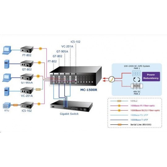 - možnost doplnění o redundantní napájecí DC 48V zdroj MC-15RPS48
