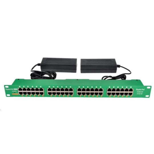 Přidáním tohoto průchozího panelu do rozvaděče získáte napájecí centrum, které jednoduchým způsobem zapojíte mezi stávající switch a patchpanel, který již vede k napájenému zařízení (IP kamera, IP telefon, bezdrátové prvky, apod.).