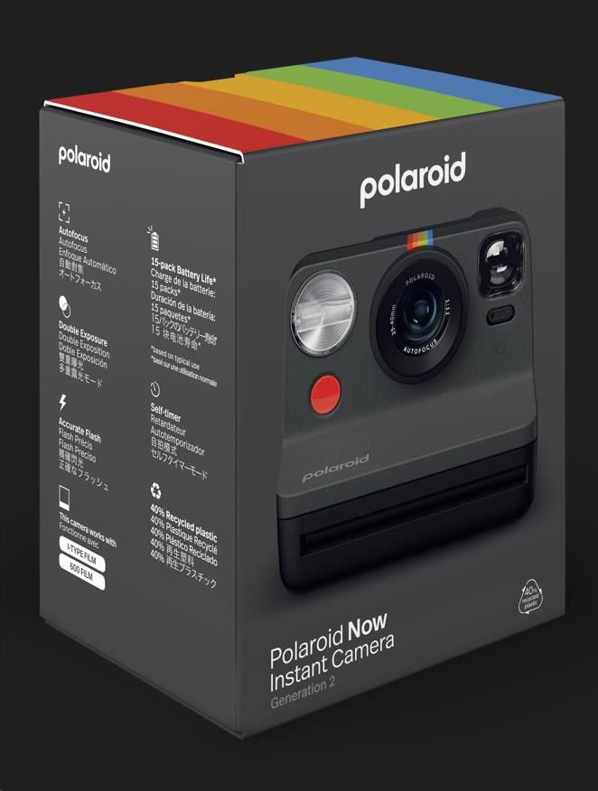 Zachyťte a navždy si uchovejte své každodenní okamžiky s instantním fotoaparátem Polaroid Now Gen 2. Tato nová generace analogového instantního fotoaparátu je vyrobena ze 40 % z recyklovaných materiálů a interní lithium-iontová baterie se nabíjí přes USB-C port.