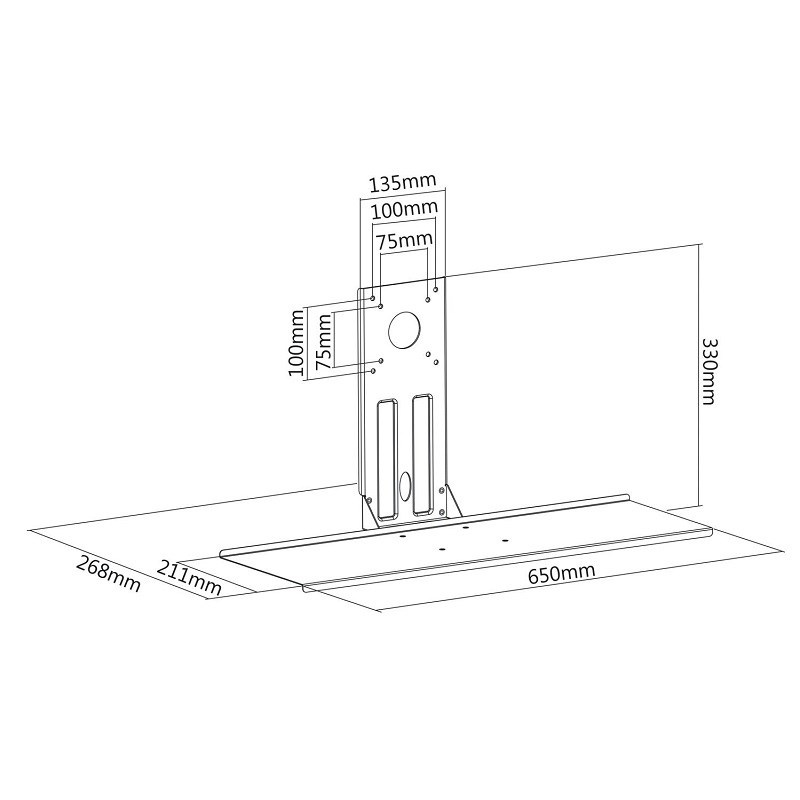Police na klávesnici a myš Fiber Mounts M7C56 Přídavná police na klávesnici a myš na držáky monitorů, uchycení na VESA 75x75 nebo 100x100 mezi monitor a držák, kovová, výborná kvalita Potřebujete na držák pod monitor umístit klávesnici a myš, aby jste ji nemuseli mít na stole? Řešení je snadné, elegantní a cenově dostupné. Nabízíme přídavnou polici na klávesnici a myš, kterou snadno uchytíte na VESA nástavec u stolních držáků, ale i nástěnných, případně stropních. Klávesnici a myš budete mít vždy přímo pod monitorem. Klávesnici je možné uchytit na všechny držáky, které podporují VESA standard 75x75 nebo 100x100. Přídavná polička na klávesnici a myš, ideální pro použití na stolní držáky monitorů nebo nástěnné držáky na Tv s úhlopříčkou do 27 palců, uchycení na VESA standard 75x75 a 100x100, nosnost 2kg, rozměry 650x211mm - Fiber Mounts M7C56 Technické údaje: nosnost 2kg délka police 650mm šířka police 211mm uchycení na VESA standard 75x75 nebo 100x100 police je vhodná pod monitory a televizory s úhlopříčkou 13" až 27" snadná instalace materiál kov barva černá záruka 5 let Přídavná polička M7C56 je vhodná na všechny stolní, nástěnné i stropní držáky na monitory, které mají VESA 75x75 nebo 100x100 a monitor, který bude na držáku zavěšený bude mít úhlopříčku 27" nebo menší..