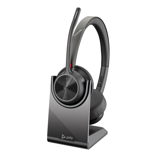 Poly Voyager 4320 MS Teams bezdrátová náhlavní souprava, BT700 USB-C adaptér, stereo, nabíjecí stojánek