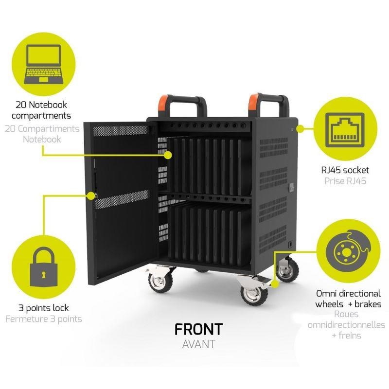 - Kapacita: až 20 notebooků do velikosti 15,6 '' a 1x RACK U19"