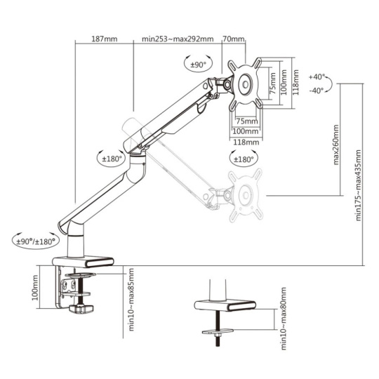 Prémiový stolní držák na monitor Fiber Mounts M4C37 Ergonomický polohovatelný držák na monitory 17-32", VESA 75x75 a 100x100, nastavení vzdálenosti monitoru od stolního uchycení, nastavení výšky, otáčení do stran, naklápění, funkce pivot, plynová pružina, nosnost 9kg, 2 stolové úchyty, vedení kabeláže, barva bílá Kancelářský držák prémiové kvality a krásného designového zpracování v bílé barvě se stříbrnými kryty. Držák poskytuje nejvyšší ergonomii - komplexní nastavitelnost: výškové polohování, nastavení vzdálenosti od stolního uchycení, otáčení do stran, naklápění, funkce pivot pro otočení obrazovky na šířku nebo na výšku. Balení obsahuje 2 typy uchycení na stolové desky: na okraje stolů nebo přes průchodku (1x otvor min. 10mm) kdekoli v prostoru stolu. Polohování je velmi snadné a rychlé, pozici monitoru můžete měnit dle potřeby x krát denně. Doporučujeme i velmi náročným zákazníkům nebo do kanceláří, kde chtějí poskytnout zaměstnancům skvělou ergonomii a pohodlí při práci, to vše navíc v krásném designovém provedení. Ergonomický držák monitoru v prémiové kvalitě Fiber Mounts M4C37 Technické údaje: nosnost 9kg plynová pružina s nastavením dle hmotnosti monitoru doporučená úhlopříčka monitoru 17-32" podpora VESA standardů 75x75 a 100x100 výškové polohování 260mm minimální výška 175mm, maximální výška 435mm vzdálenost monitoru od stolního uchycení 0-549mm funkce pivot pro nastavení monitoru na šířku nebo na výšku uchycení na stolové desky o průměru 10-80mm 2 typy úchytů na stoly: svěrák na okraj stolu a šroubovice na průchodku (otvor min. 10mm) systém pro vedení kabeláže barevné provedení bílé, krytky stříbrné záruka 5 let Prémiový designový držák na monitory ergonomický do kanceláří Fiber Mounts M4C37 Držák M4C37 podporuje VESA standardy: VESA 75x75 VESA 100x100 možnost zakoupit včetně rozšíření na VESA 200x100 a 100x200 možnost zakoupit včetně rozšíření na VESA 200x200.