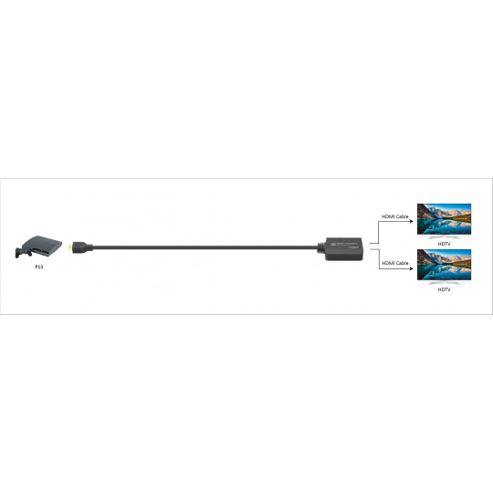 | Návod k zapojení: | 1) Vstup HDMI splitteru zapojte HDMI kabelem do zdroje signálu a výstup zapojte do zobrazovací jednotky nebo monitoru. Pokud se obraz po zapojení rozbočovače nezobrazí ihned po zapojení, vyčkejte cca 30s než dojde k rozpoznání HDMI signálu. |