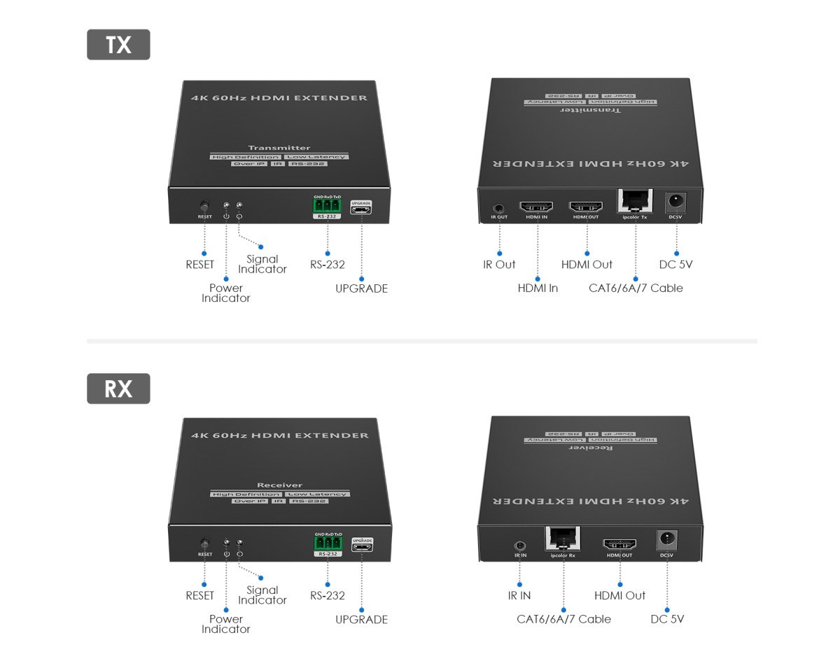 PremiumCord HDMI extender na 120m přes LAN, nekompresovaný, 4K@60Hz, přes IP