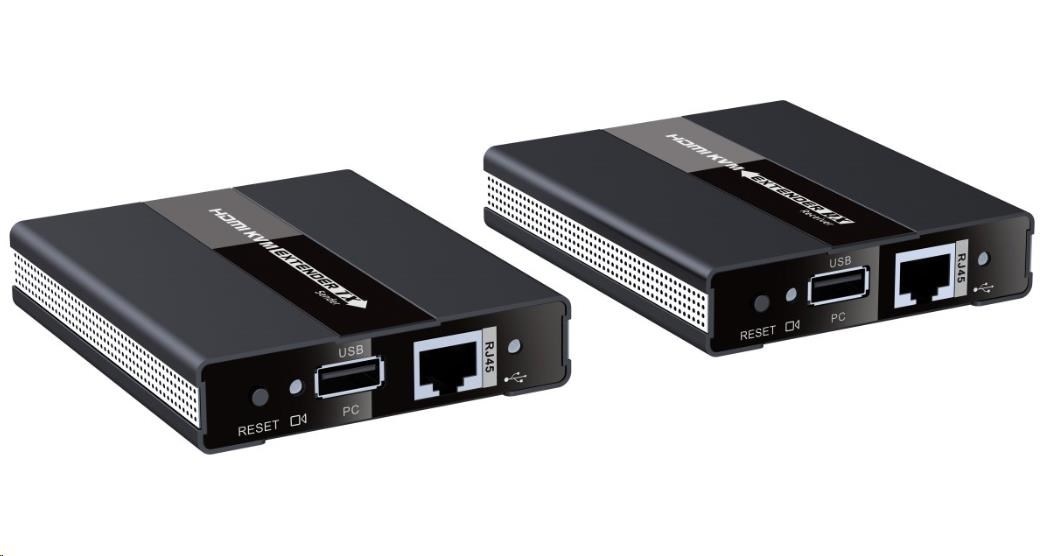 - Extender přenáší také USB, vysílač má jeden USB pro zapojení do počítače,přijímač má dva USB konektory pro zapojení například myši a klávesnice