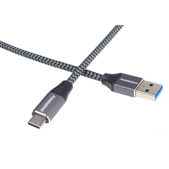 PremiumCord kabel USB-C - USB 3.0 A (USB 3.1 generation 1, 3A, 5Gbit/s) 0,5m bavlněný oplet a kovové hliníkové konektory